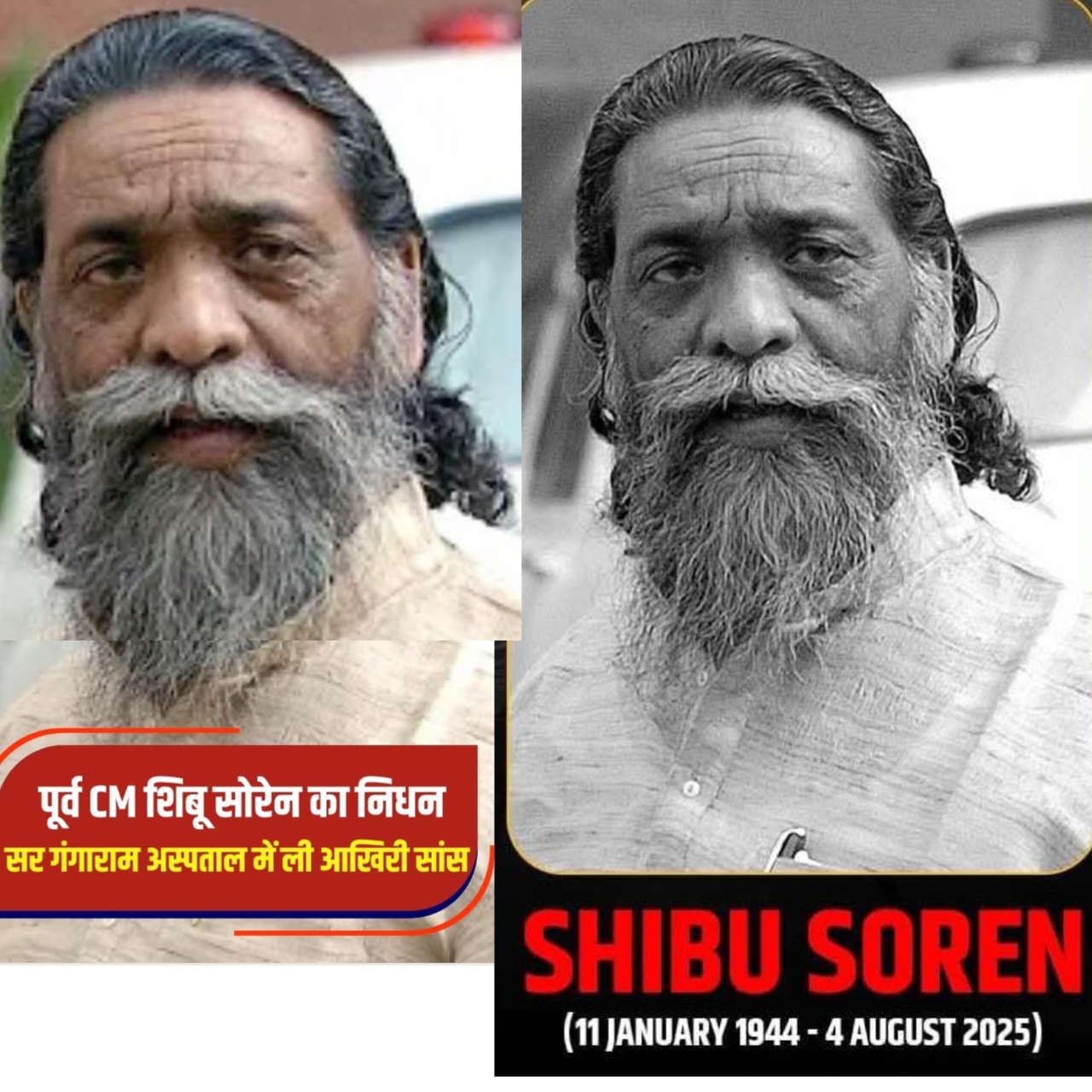झारखंड के पूर्व कैबिनेट मिस्टर शिबू सोरेन का निधन। दिल्ली में सर गंगाराम अस्पताल में अपनी अंतिम सांस ली।